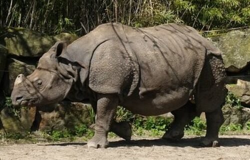 インドサイの特徴を、いくつかの項目に分けて紹介しています。サイと聞くと、角の数は二本のように思えますが、インドサイは違います。インドサイの絵を描く機会があれば注意してください。